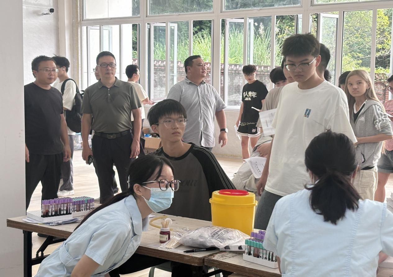9月16日上午8时,副校长方飞在后勤基建处处长张昊、副处长甘华春的陪同下,亲临体检现场视察指导。校长在采血、内科、外科、视力等各个检查区域,细致了解体检流程、项目设置及医疗后勤保障情况。