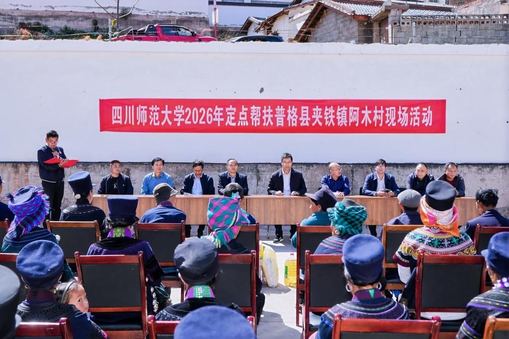 在海拔2000米以上的夹铁镇,校领导带队深入一线,实地到驻村队员和支教学生的工作生活环境走访慰问。慰问中,校领导对后勤驻村干部给予高度肯定。自2023年9月,已在当地连续驻守两年、此次继续驻村的王彬同志,完成首期驻村帮扶任务、已如期轮换回校的何宇同志,以及2026年2月新轮换到岗、迅速适应环境的熊勇同志,他们很好地传扬了川师大后勤职工身上所体现的“孺子牛、拓荒牛、老黄牛”精神,在帮扶一线无私奉献、默默耕耘,赢得了当地干部群众的高度认可,用实际行动擦亮了“川师后勤”的育人品牌。