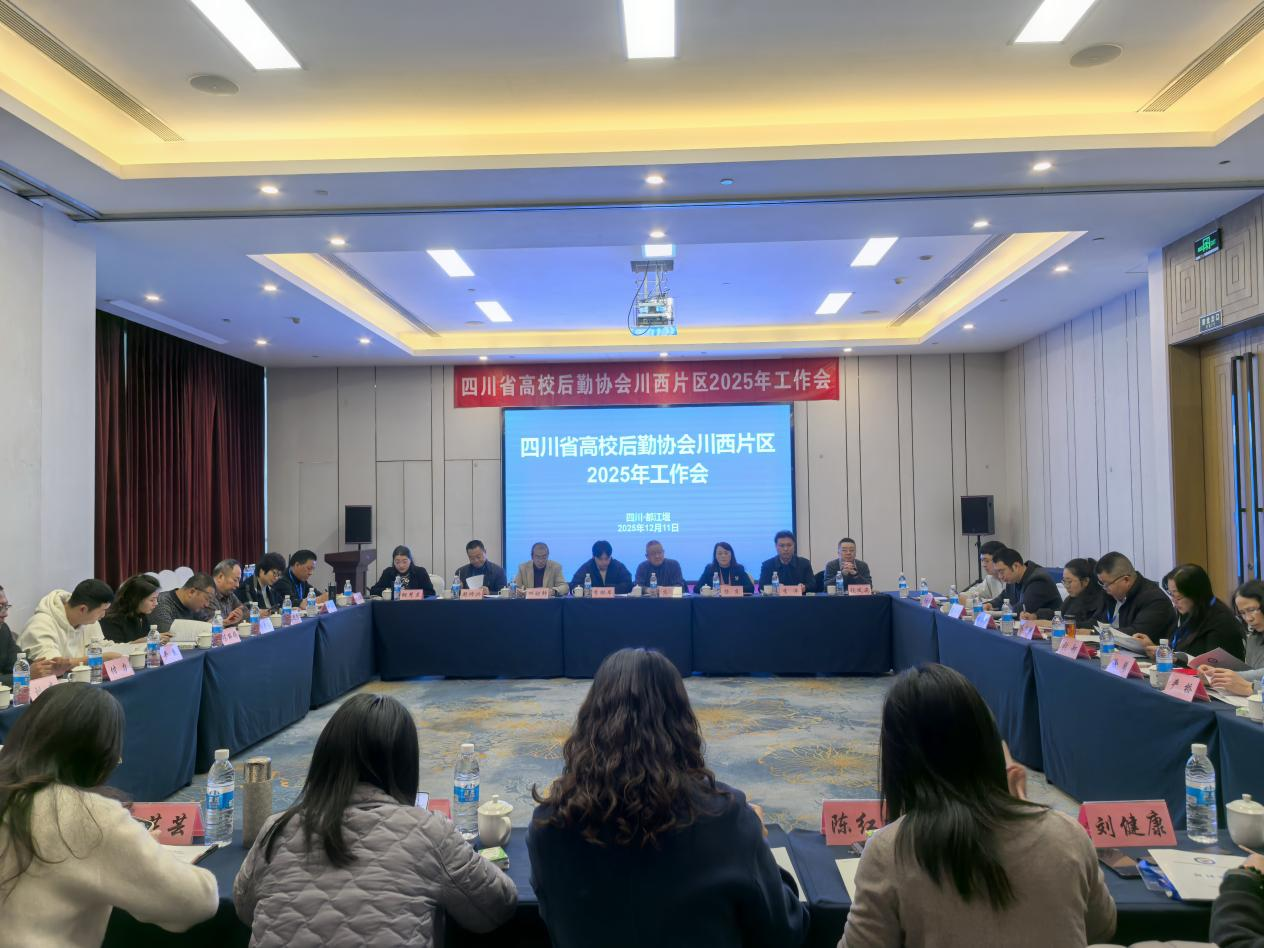 12月11日,四川省高校后勤协会川西片区2025年工作会在都江堰市召开。特邀四川省学校基本建设与后勤产业中心高校后勤产业科副科长李鹏举、四川省高校后勤协会秘书长高庆出席会议。来自川西片区19所高校后勤主要负责人及相关人员40余人参加会议。会议由四川农业大学后勤管理处党总支书记何祖锋主持。
