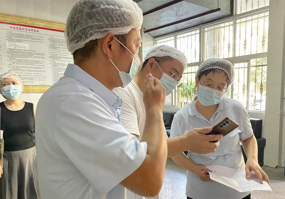 检查组对我校的食堂、食品储存仓库以及食品加工区域进行了全面细致的检查。他们仔细检查了食品的进货渠道、储存条件、加工流程以及餐具的消毒情况,确保每一个环节都符合食品安全标准。