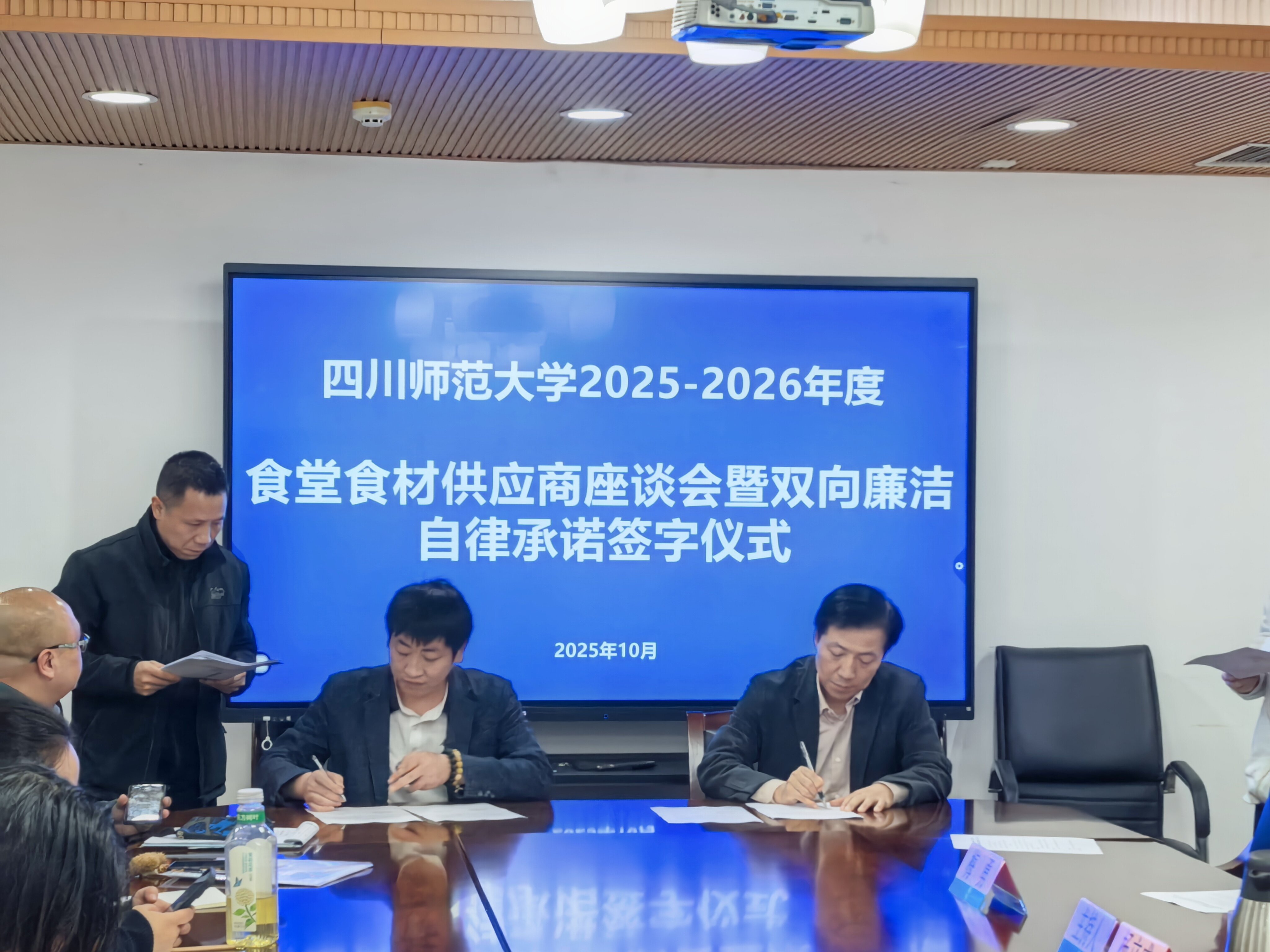 为深入贯彻落实廉洁自律要求,防范潜在廉洁风险,全力推进“廉洁后勤”建设,保障师生饮食安全,进一步提升学校后勤治理能力,2025年10月30日下午,后勤保障部举行2025-2026年度食堂食材供应商座谈会暨双向廉洁自律承诺签字仪式。省纪委监委驻四川师范大学纪检监察组、校纪委周雪同志出席会议,后勤班子成员、相关部门负责人、食材验收监督人员代表、食堂经理及保管代表,以及2025-2026年度食材供应商参加。座谈会暨签字仪式由后勤保障部副部长杨立成主持。