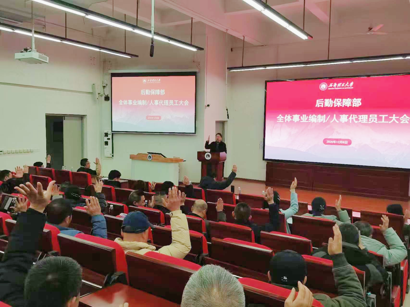 最后,后勤保障部召开了全体事业编制/人事代理员工大会,人力资源与质量安全科就相关绩效分配方案作专题汇报,参会人员以表决方式完成方案审议。