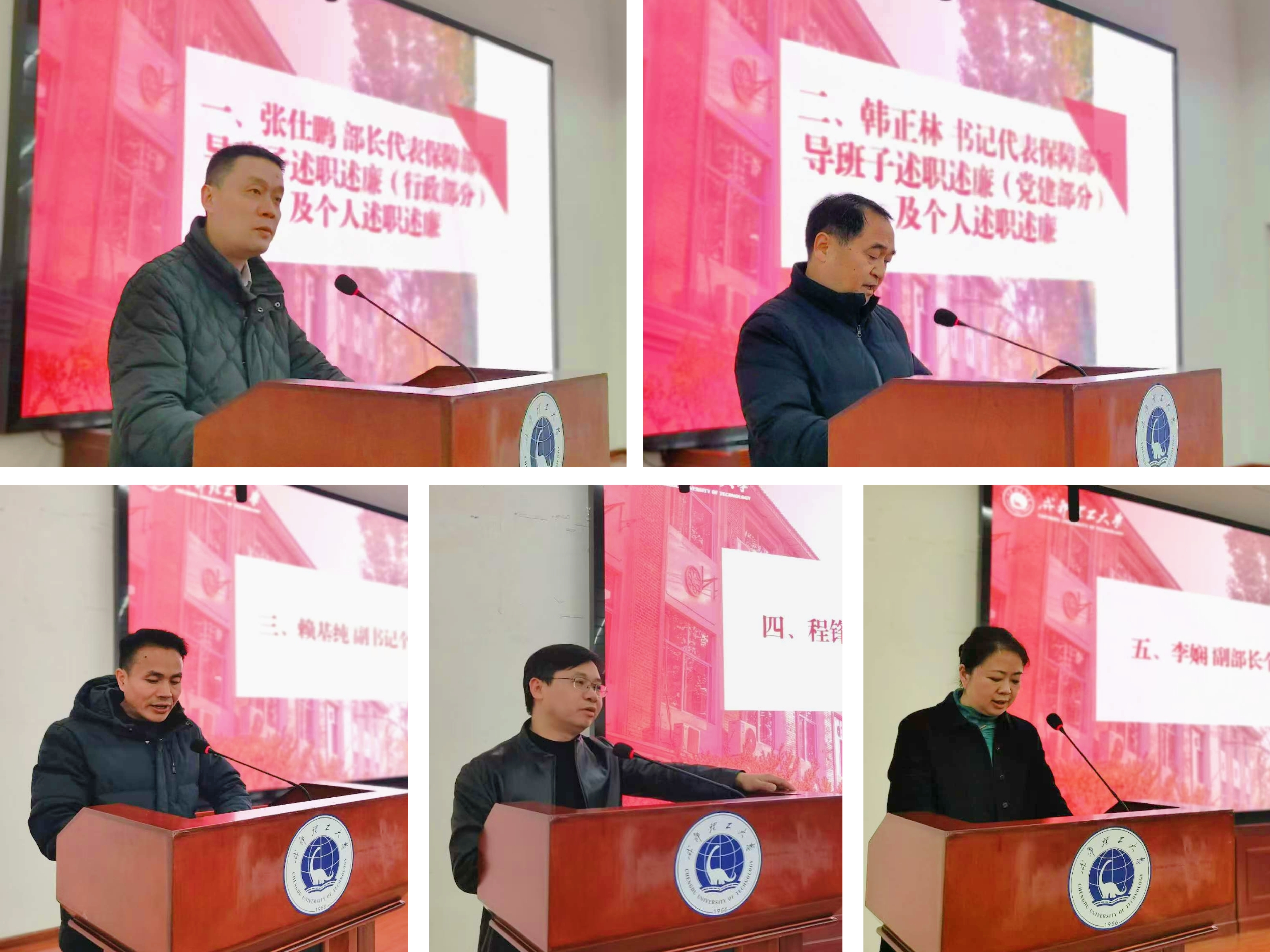 党委书记韩正林代表处级领导班子围绕2025年抓党建工作、党风廉政建设落实情况进行述职述廉。党委副书记、部长张仕鹏代表处级领导班子就后勤保障部业务工作进行总结汇报及个人述职述廉。随后,3位班子成员分别进行个人述职述廉,全面复盘各自分管领域在服务保障、队伍建设、风险防控等方面的工作成果与改进方向。