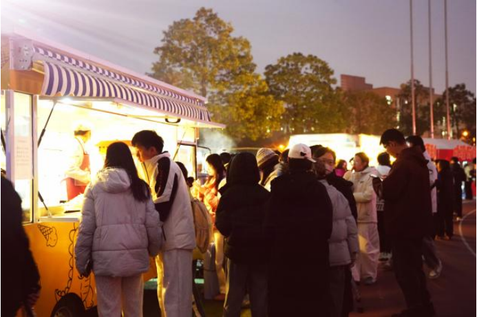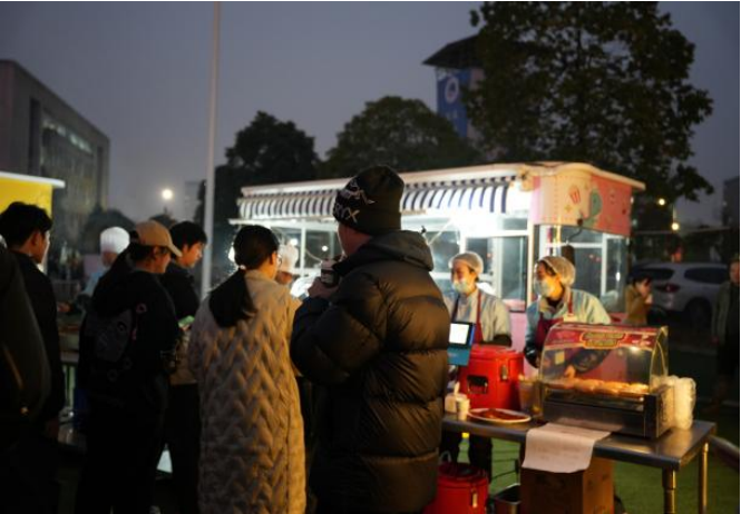 面对晚会参与人数多、服务时段集中、户外气温较低等实际情况,餐饮服务中心高度重视,制定了详尽的工作预案。中心特别调配了3辆设计新颖、外形可爱的多功能餐车,提前进驻体育场周边指定区域。这些餐车不仅机动灵活、标识醒目,更成为了当晚活动现场一道亮丽的风景线,吸引了许多师生驻足。