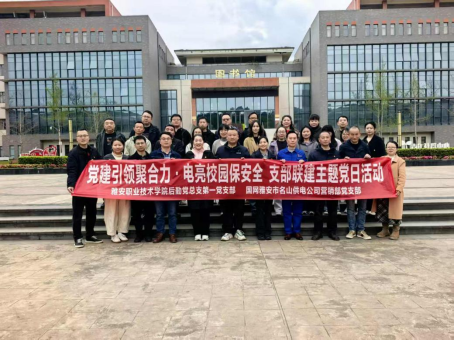 为进一步探索新时代基层党组织“共建、共享、共促”新模式,推动党建工作与业务工作深度融合,3月25日下午,雅安职业技术学院后勤党总支第一党支部与国网雅安市名山供电公司营销部党支部联合开展了“党建引领聚合力·电亮校园保安全”支部联建主题党日活动。