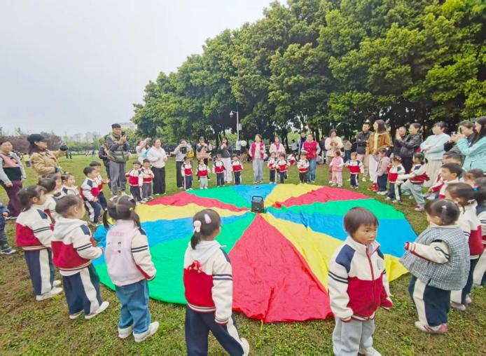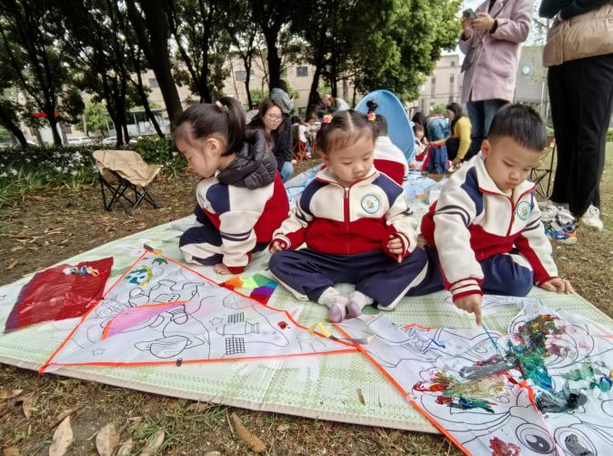 活动当天,伴随着欢快的旋律,全体师幼与家长共跳热身舞蹈《春天在哪里》,孩子们跟着节奏摇摆身体,家长们融入其中,亲子间默契互动,灵动的舞姿灿烂的笑容,将春日的生机与活力尽情展现。随后,孩子们在老师的组织下拿出颜料和画笔开始绘制风筝,家长与孩子合作涂鸦、一起互动,把对春天的喜爱和彼此的温馨有爱都画进了风筝里,一只只风筝在小手中“活”了起来。他们拿着自己的作品一起迎着春风奔跑,手中的线越放越长,它们在空中相互追逐、嬉戏,与蓝天白云构成了一幅美丽的春日画卷。活动现场,老师们还组织开展了各类趣味游戏和亲子活动,不仅锻炼了孩子们的体魄,更增进了对团队合作精神的理解。