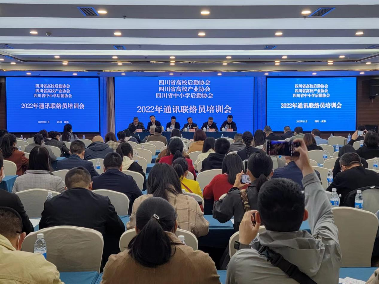 11月18日,四川省高校后勤协会、四川省中小学后勤协会和四川省高校产业协会联合举办的2022年通讯员培训会在成都召开。教育厅原机关党委书记、一级巡视员、四川省中小学后勤协会会长李卓明,四川省学校基本建设与后勤产业中心主任王国强、副主任蒋鹏飞,四川省高校产业协会党支部书记张勇,以及来自全省各市(州)教育主管部门、高校后勤产业战线的通讯员联络员共计200余人参加会议。会议由四川省高校后勤协会副会长、秘书长高庆主持。