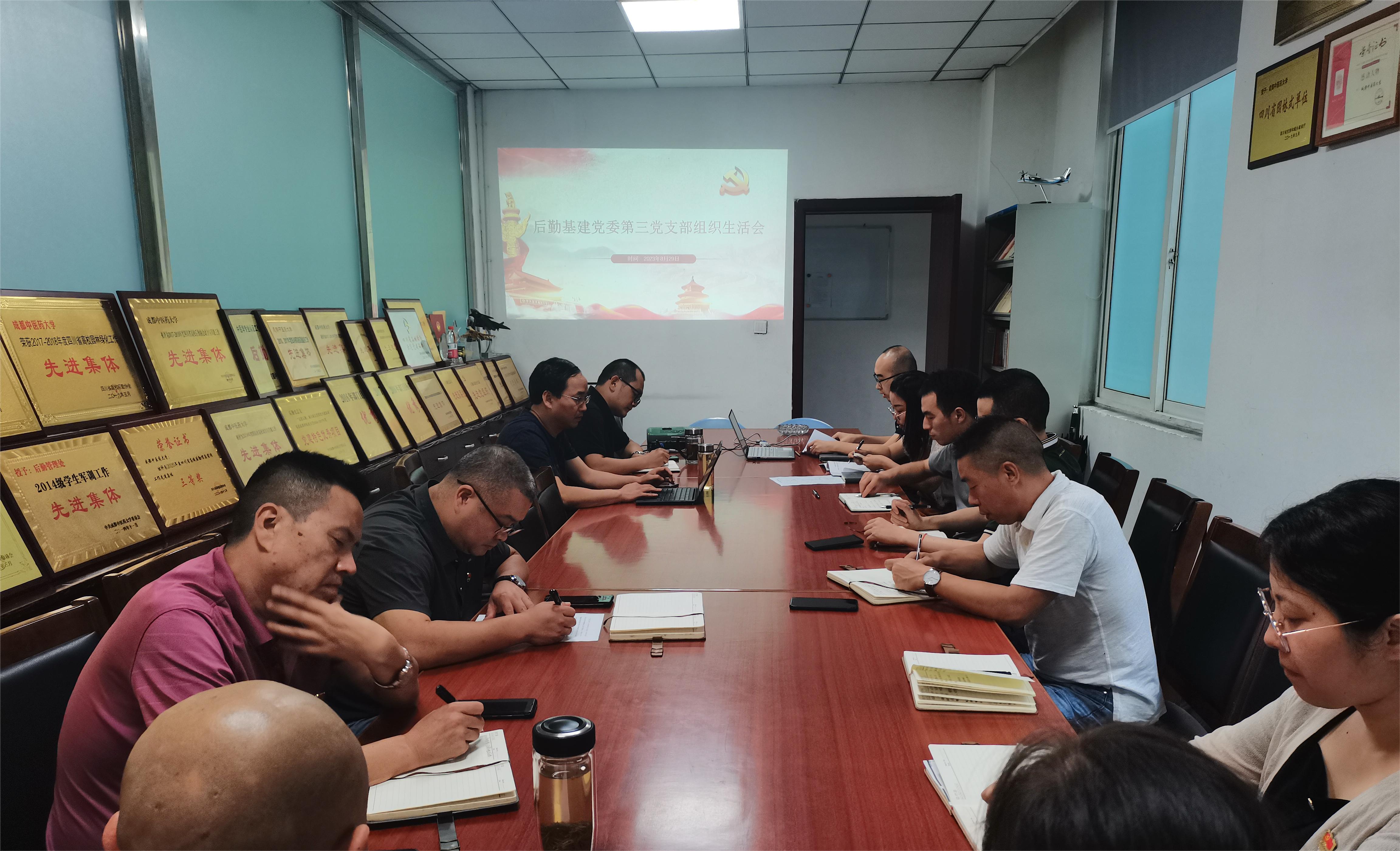 为深入学习贯彻习近平新时代中国特色社会主义思想主题教育实践活动和习近平总书记来川视察重要指示精神,推动党员学习教育走深走实,8月29日下午,成都中医药大学后勤基建党委第三支部召开全体党员组织生活会。会议由支部书记吕鹏主持。