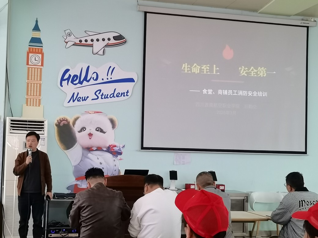 2026年3月29日下午,四川西南航空职业学院后勤处组织并开展了春季校园食堂及各商户专项消防安全培训活动。此次培训通过系统性知识讲解与实际操作指导,旨在全面提升相关从业人员的消防安全意识与应急处理能力,切实守护全院师生的日常饮食安全,保障校园整体环境的和谐与平安。