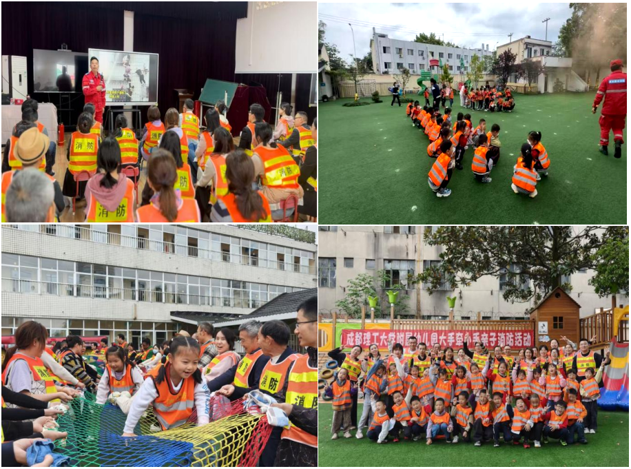 近日,成都理工大学附属幼儿园开展亲子消防演练活动,以消防知识讲座+火灾模拟逃生舱演练+亲子消防游戏的形式,筑牢师幼与家长消防安全防线。