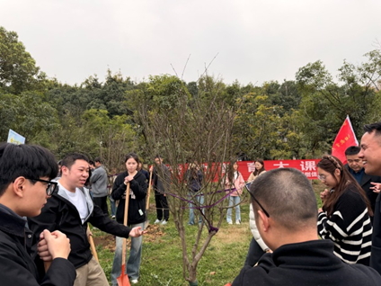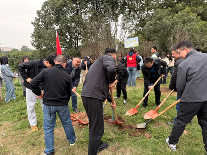 在植树活动中,后勤工作人员对师生进行分工协作的指导,讲解种植知识,协助抬锹填土,示范浇灌要点。通过这一系列实干的举动,切实诠释了后勤“服务育人”的核心理念。师生们热情高涨,以辛勤的劳动践行“劳动最光荣”的信念,履行绿色发展的承诺。